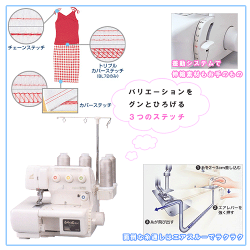◆トリプルカバーステッチ・・・飾り縫いや裾上げがきれいに仕上がり、ゴム入れにも大活躍。