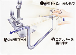 面倒な糸通しはエアスルー(自動エア糸通し)でラクラク糸通し!