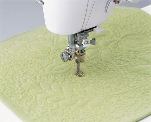 送り歯を下げた状態で生地を自由な方向に動かすことで絵を描くようにステッチできます。