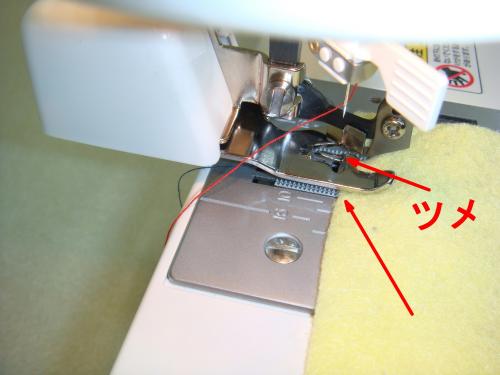 ※切り込みを入れておかないと生地をセットした時送り歯まで生地が届かないため生地送りができません。