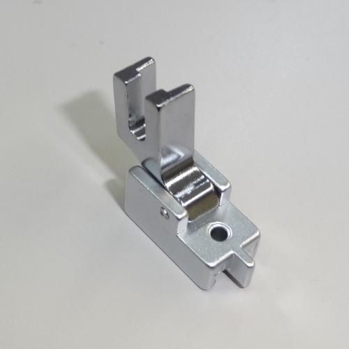 押え金の溝と中央部のツメ(突起)がファスナーのムシを捉えつつ、しっかり立ち上げるのでムシの際を縫うことができます。