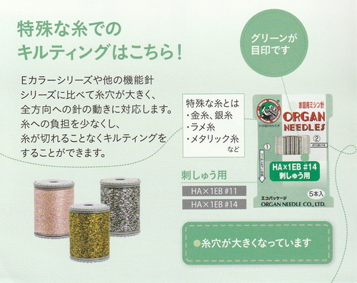 ラメ糸、金糸、銀糸など特殊な糸でのキルティングにおすすめです。