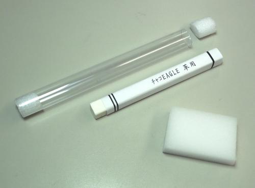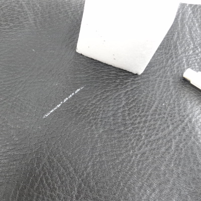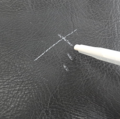 皮革に軽く書いて、消すときは付属のスポンジでこするだけでスッキリ消えます。