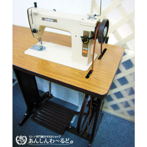 足踏み台のプーリー(革ベルトをかける車輪のような形のもの、はずみ車)が大きいため、針の貫通力が大きく、スピードが出やすい高速仕様になっています。