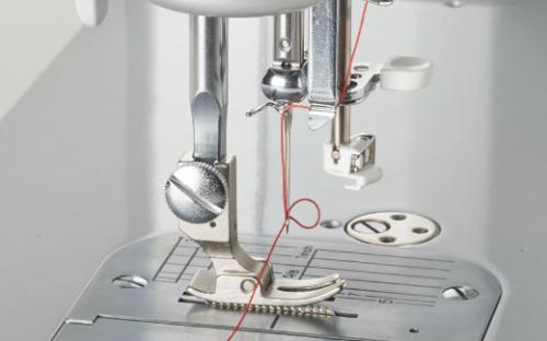 ミシン操作中、万一糸がらみなどで1秒以上モーターがロックされると、自動的に安全装置が働きミシンが停止する親切設計です。