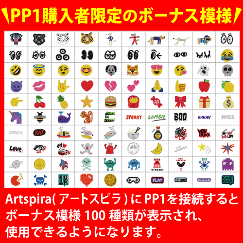 ArtspiraにPP1を接続するとボーナス模様が表示され、使用できるようになります。