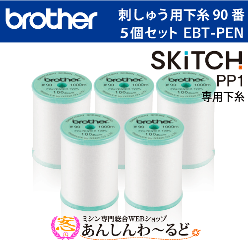 ブラザー 刺しゅう用下糸(白) 90番 5個セット EBT-PEN 刺しゅう専用機 SKiTC スキッチ PP1専用