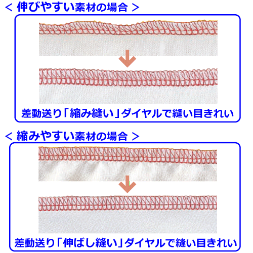 2本針4本糸なら、ジャージなどの伸縮素材もきれいな仕上がり。